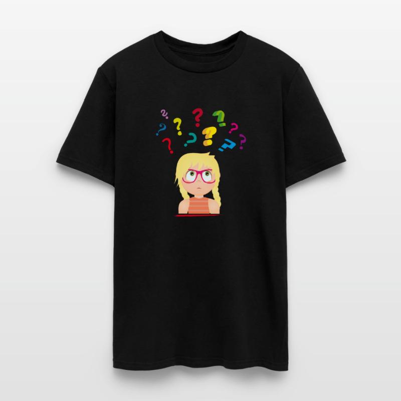 Girl with glasses with many colorful question mark
